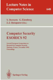 [LO-92]Computer Security - ESORICS 92, Proceedings of the 2nd European Symposium on Research in Computer Security, Lecture Notes in Computer Science n°648, Springer-Verlag, Eds Y. Deswarte, G. Eizenberg, J.-J. Quisquater, 1992, ISBN 3-540-56246 et ISBN 0-387-56246, 460 pp., DOI 10.1007/BFb0013888